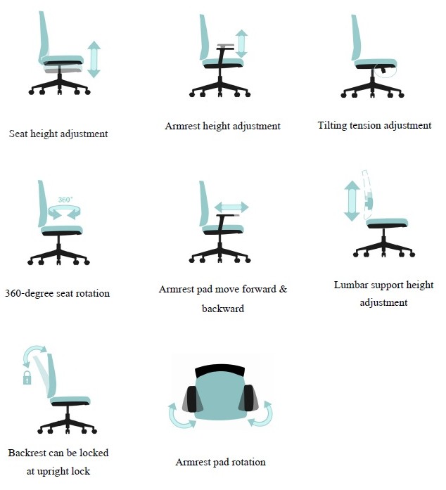 يضمن الإطار الفريد للكرسي الحفاظ على تلامس الظهر السفلي مع الانحناء الطبيعي، مما يساعد على الحفاظ على قوة وصحة الظهر، مع دعم قطني قابل للتعديل لضمان ملاءمة مثالية للمستخدمين من جميع الأطوال والأشكال.