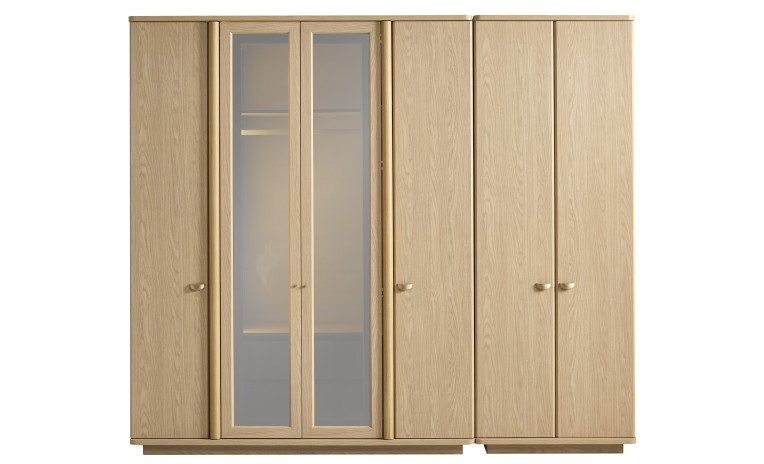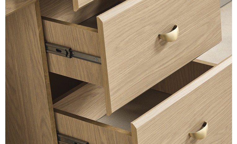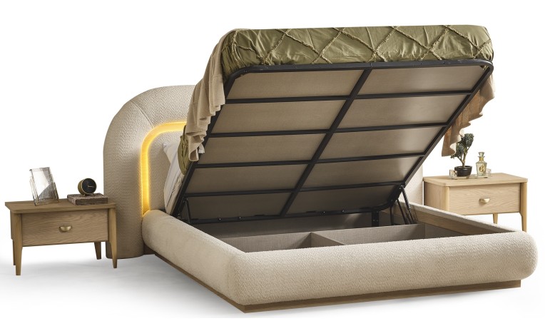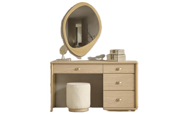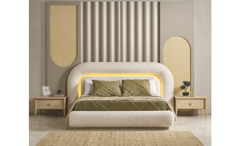 يتميز بتشطيب أنيق بلون البلوط الطبيعي الفاتح يمنحه مظهراً دافئاً وعصرياً، ويضم مساحات تخزين واسعة وتصميماً راقياً مزوداً بإضاءة مدمجة تضيف لمسة من الأناقة والراحة، ليمنحك ملاذاً هادئاً يجمع بين العملية والجمال.