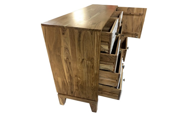 أضف لمسة فنية مميزة وحلول تخزين عملية إلى منزلك مع خزانة الأدراج “كريسنا” ذات 8 أدراج. مصنوعة من خشب الأكاسيا الدافئ، وتتميز هذه القطعة متعددة الأدراج بواجهات منحوتة باللون الأبيض وتصميم غير متماثل يلفت الأنظار ويضفي طابعاً فريداً على أي مساحة.