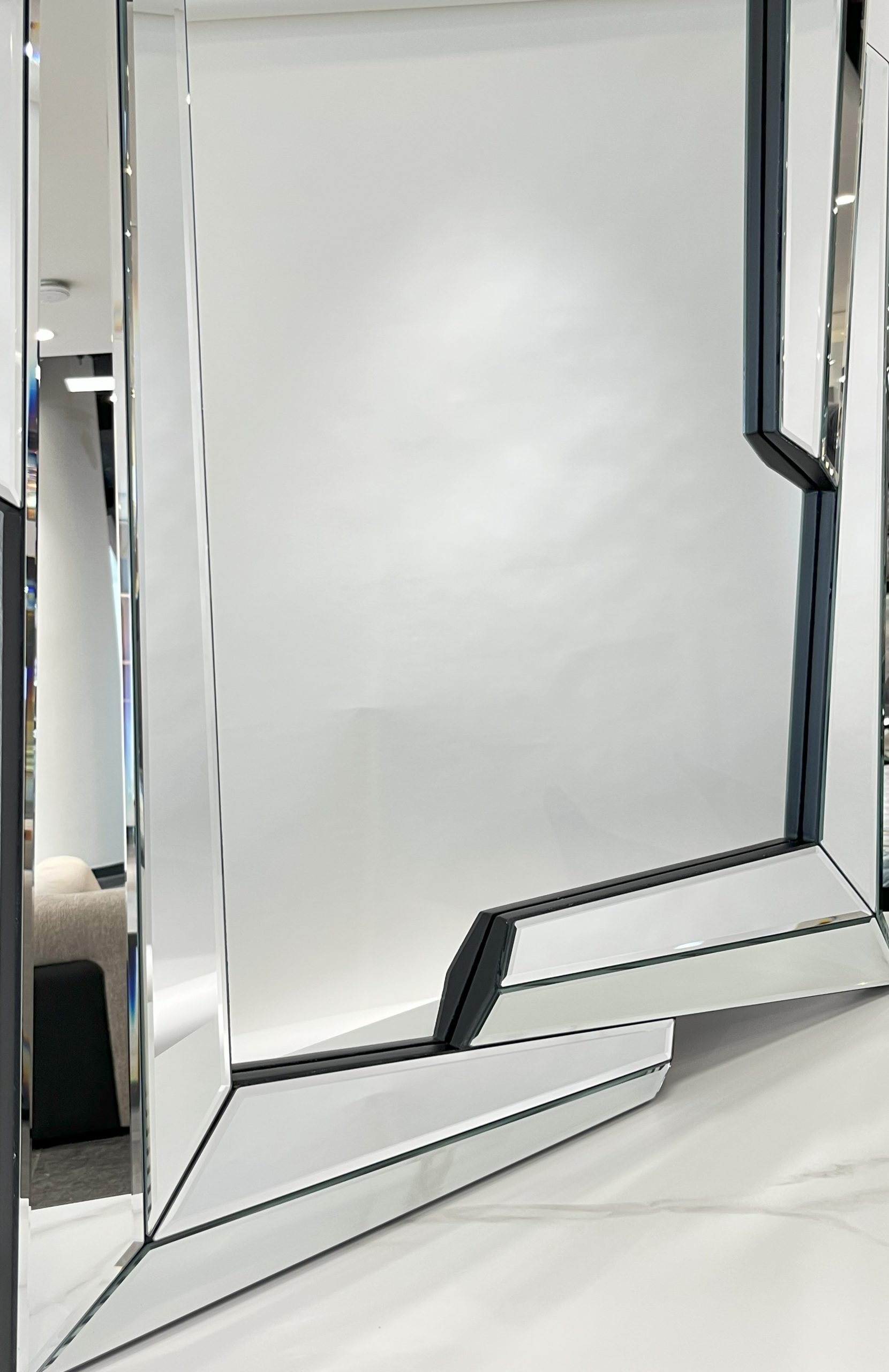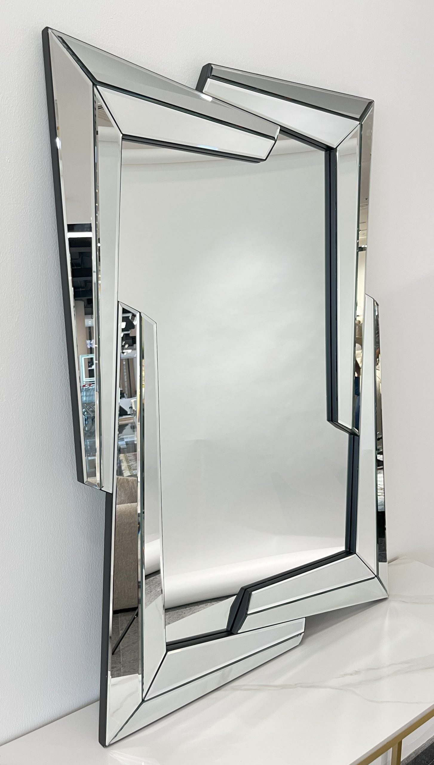 أضف لمسة من الأناقة المعاصرة إلى منزلك مع مرآة الحائط الهندسية المذهلة هذه. سيخلق تصميمه الفريد والزاوي والسطح العاكس نقطة محورية دراماتيكية في أي غرفة.