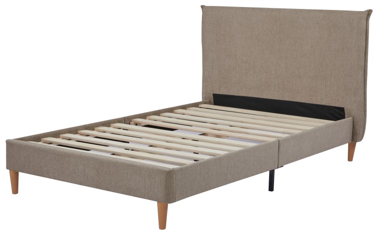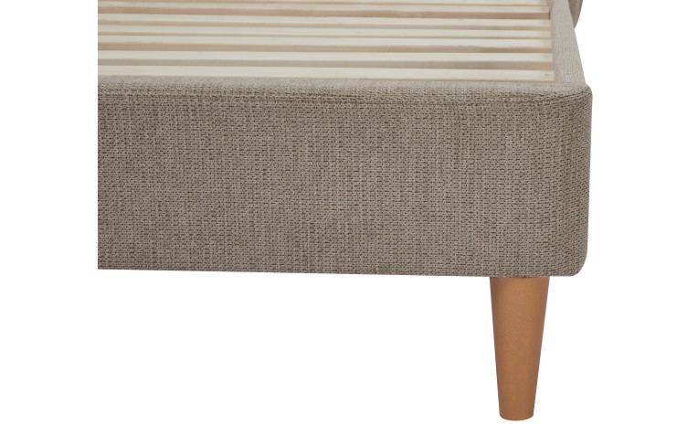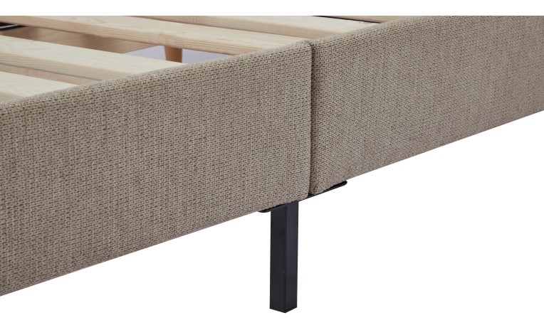يأتي بتنجيد من قماش يشبه الكتان متين وناعم الملمس يمنح مظهراً راقياً وإحساساً بالدفء، كما يتضمن شرائح خشبية متينة لتوفير دعم ممتاز للمرتبة وضمان راحة تدوم طويلاً.