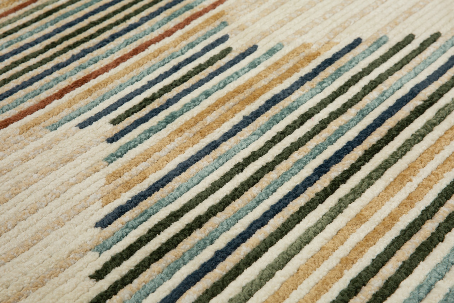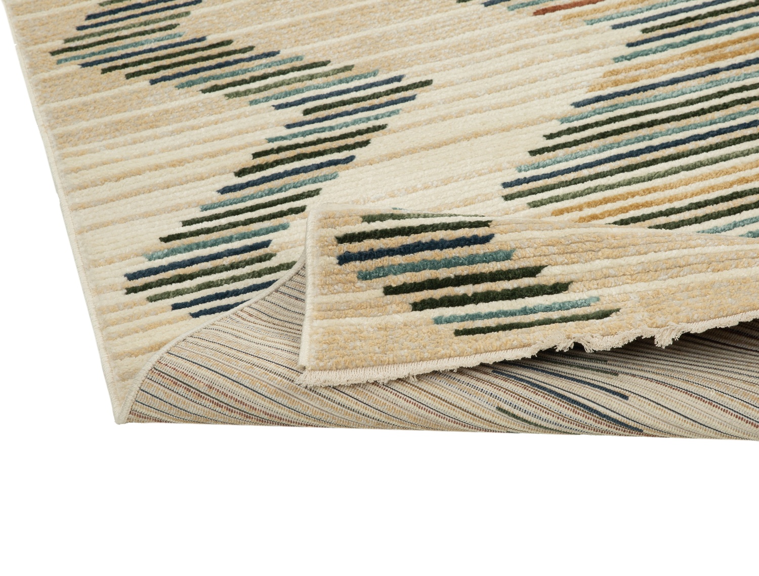 Define your modern space with the Ural Carpet Rug. Measuring 160x220 cm, this rug features a unique pattern of vibrant, multi-colored stripes forming bold diamond shapes on a neutral background. Its eye-catching geometric design adds contemporary flair and visual texture, creating a stylish and durable foundation for any room.