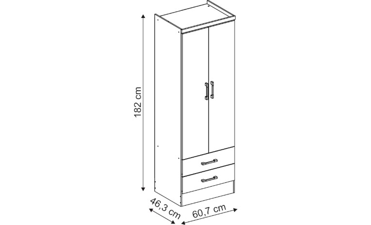 Maximize your bedroom storage with the 2 Door White Wardrobe. This compact yet spacious wardrobe offers a clean, minimalist design in a crisp white finish. Featuring ample hanging space behind two doors and two convenient lower drawers, it's perfect for organizing clothing and accessories in any contemporary living space.