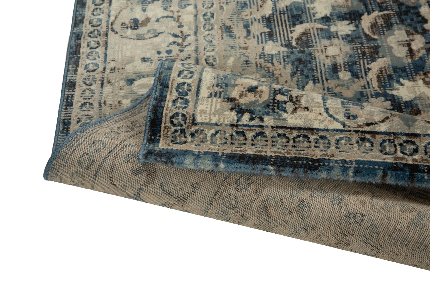 Bring timeless elegance to your home with the Grand Kendra Carpet Rug. This large 240x340 cm rug features a classic oriental design with a central medallion and intricate border in beautiful distressed blue and cream tones. Its vintage look adds character and sophistication, making it an ideal anchor for traditional or vintage-inspired living spaces.