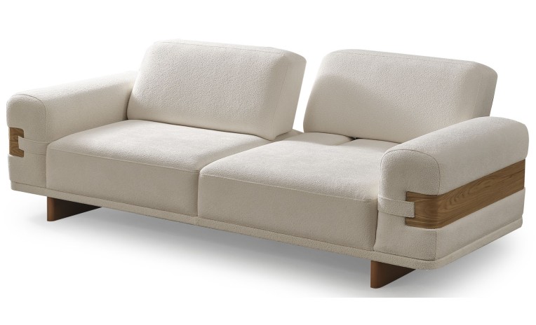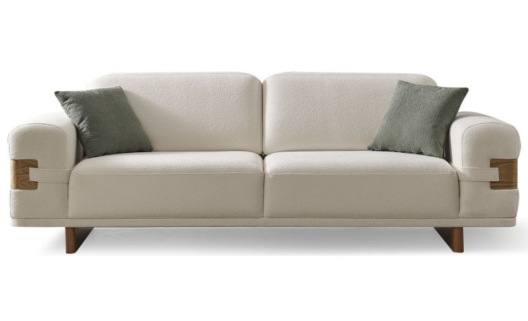 - Features sleek, integrated wooden panels on the sofa arms and base
