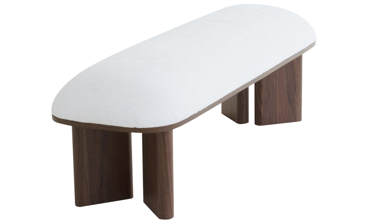 A sleek, modern upholstered bench designed for added convenience. Its soft, textured fabric and minimalistic silhouette make it ideal for bedrooms. This bench combines comfort, style, and practicality—perfect for contemporary homes seeking elegant seating with extra utility.