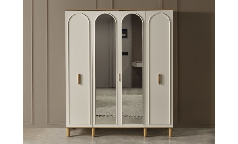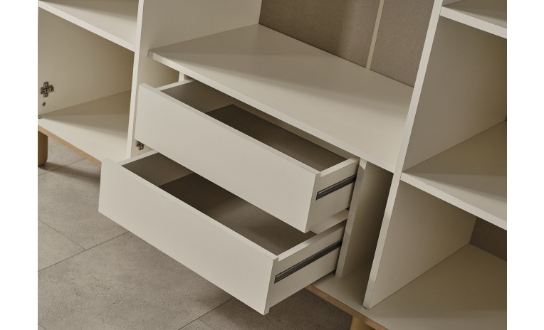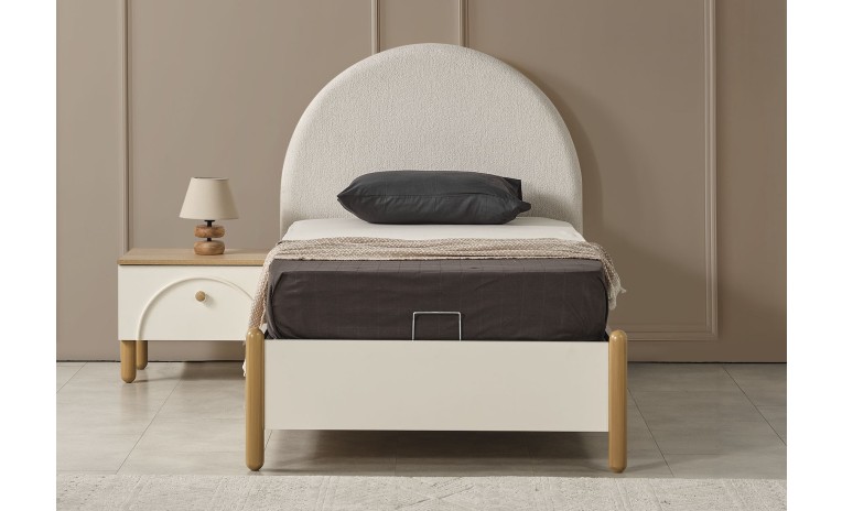 Create a serene and stylish space for your child with the Bohme Man Young Kids Bedroom Set. This comprehensive collection features a unique upholstered half-moon headboard and a 200x120 cm bed. Minimalist design with natural wood accents, offering a blend of elegance, comfort, and ample storage for a perfect modern room.