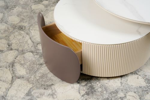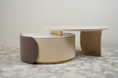 Elevate your living space with this Coffee Table Set, an innovative and stylish duo. This set features two round tables with exquisite sintered stone tops, one designed to swivel and nest beneath the other for dynamic configurations.