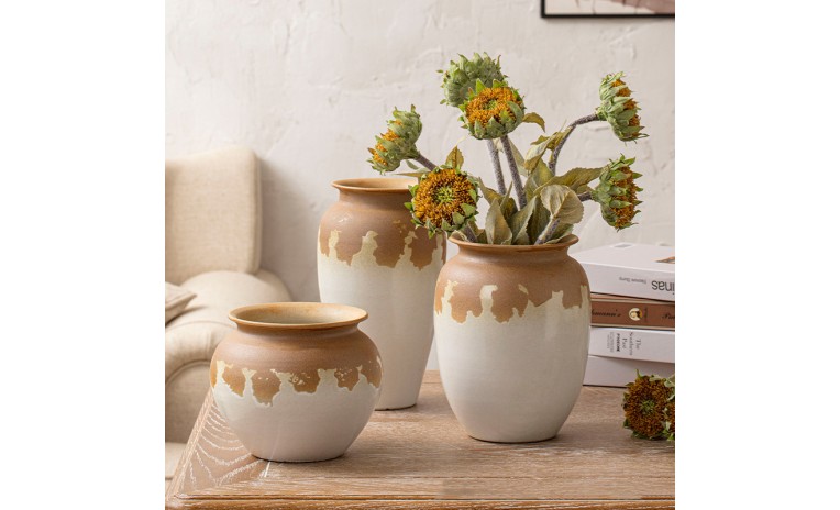 Elevate your decor with this stunning two-tone porcelain vase. Its unique design features a smooth, dark rim that beautifully contrasts with a deeply textured, rustic body. This sculptural piece adds a sophisticated, artistic touch to any living space or office. Perfect for displaying on a shelf or as a standalone centerpiece.