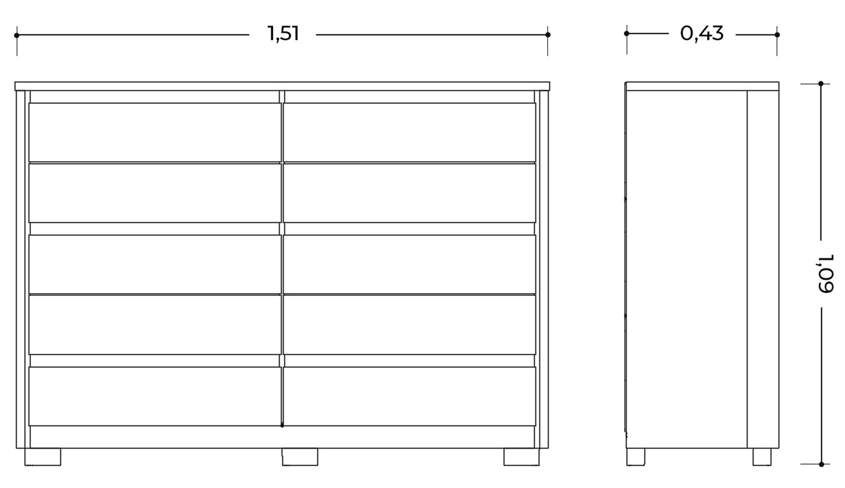 • Dimensions: 43 x 151 x 109 cm