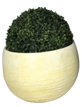 38x30cm Faux Boxwood Ball in Concrete-Look Planter #KD-044