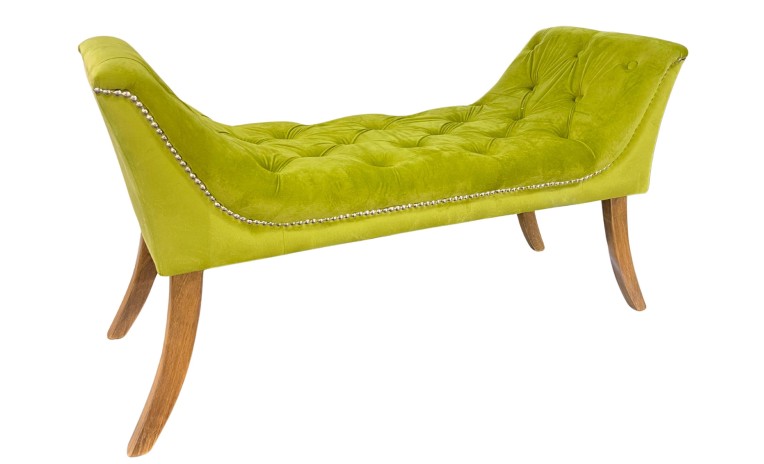 Elevate your living space with the Green Accent Bench. Its luxurious velvet upholstery, elegant button tufting, and unique scalloped silhouette with chic nailhead trim make it a sophisticated accent piece.