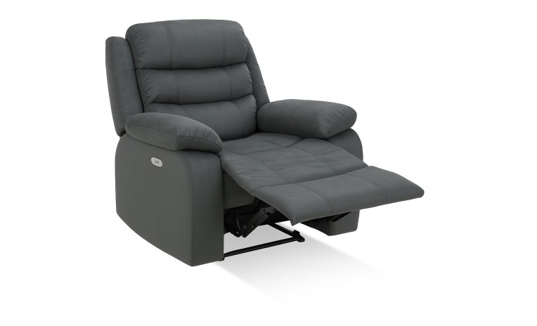 Features a subtle chrome button panel on the side for easy control of power recline functions