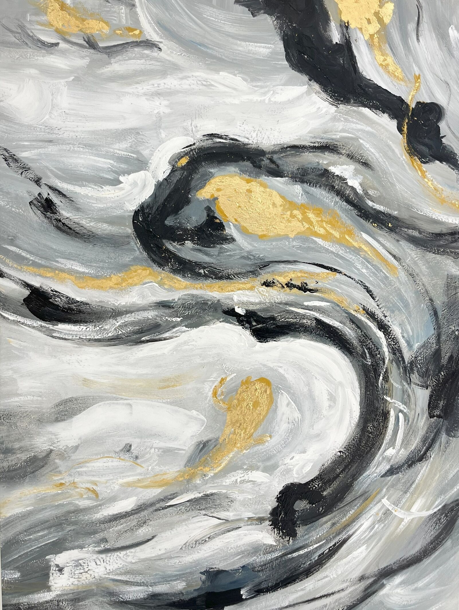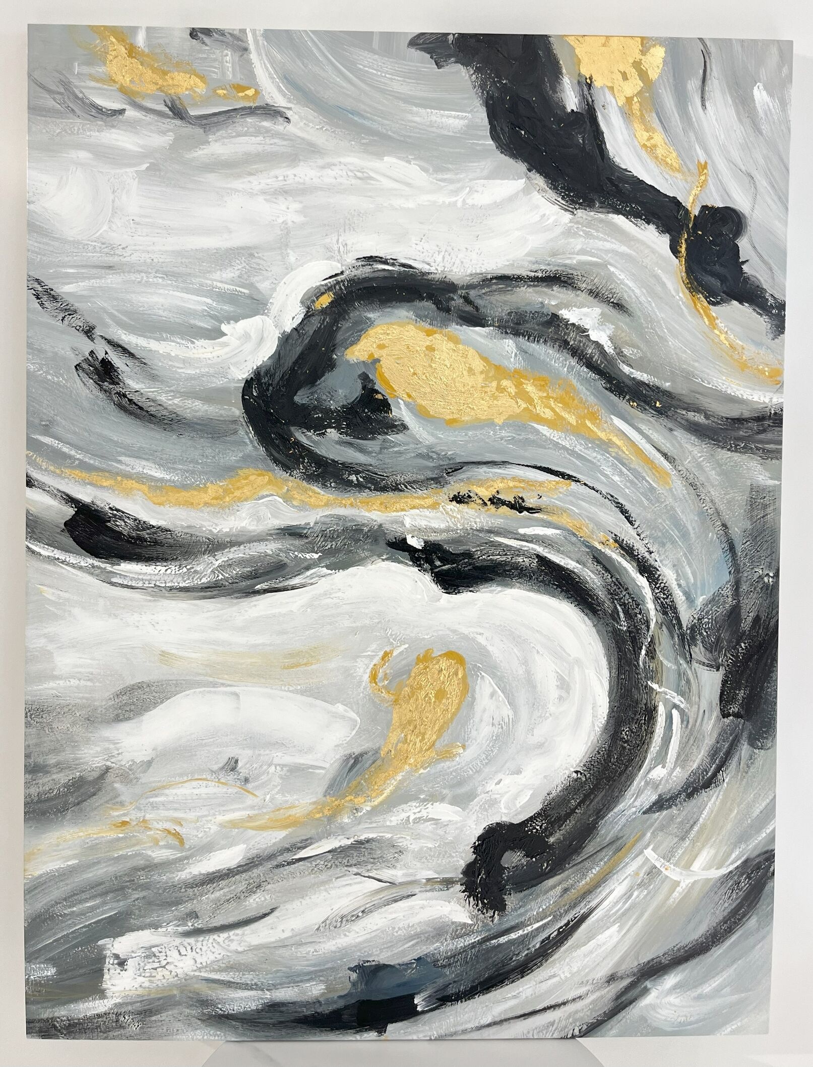 Elevate your space with this stunning Handmade Abstract Wall Art. Measuring 90x120cm, it features an elegant swirl of grey, black, white, and gold tones. Perfect for contemporary interiors, this artwork adds a modern, luxurious touch to living rooms, offices, or galleries.
