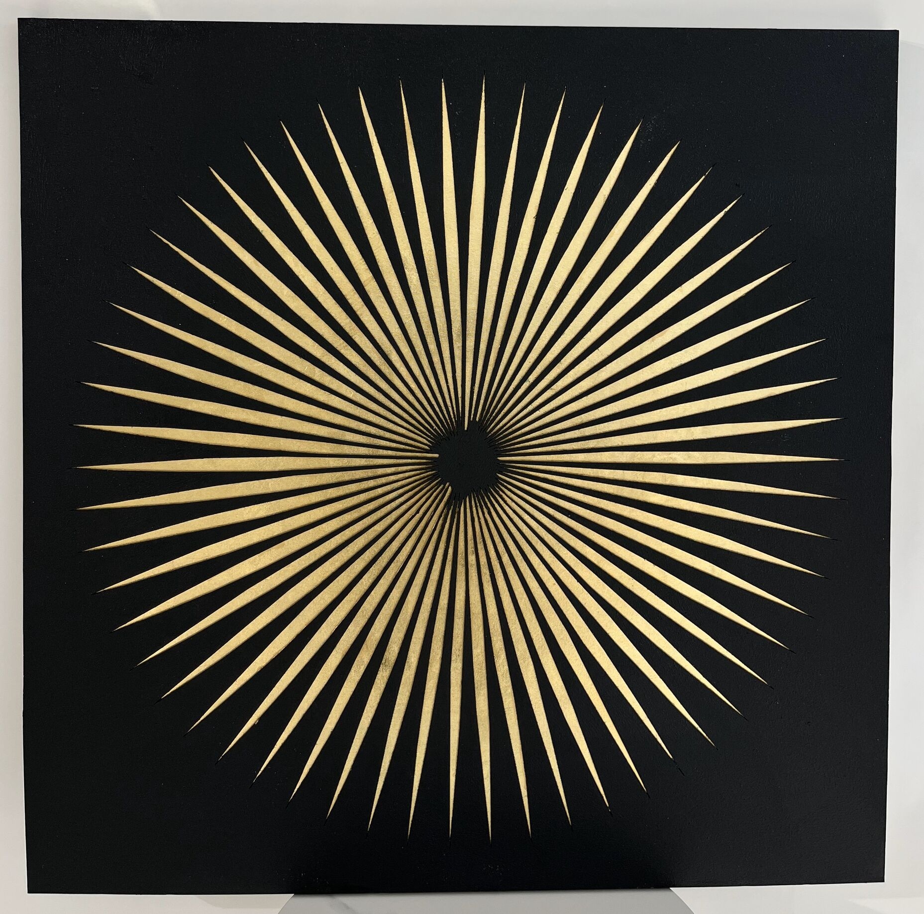 Elevate your interior with this striking handmade canvas painting featuring a radiant gold starburst design on a deep black backdrop. Measuring 100x100cm, it’s the perfect centerpiece for adding modern elegance and artistic flair to your space.
