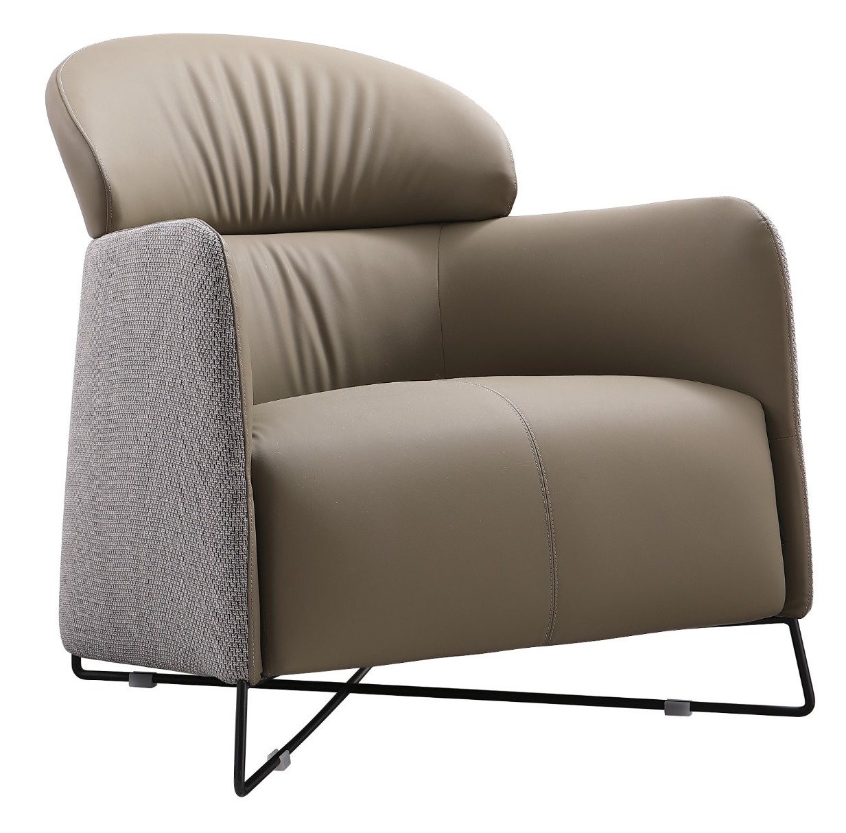 Add a touch of modern elegance with the Lounge Chair #EC-406. Featuring a stylish blend of smooth grey PU leather on the seat and back with coordinating textured fabric on the sides, this chair offers both comfort and contemporary design. Supported by a sleek black metal base, it's the perfect accent piece for your living room, bedroom, or office lounge area.