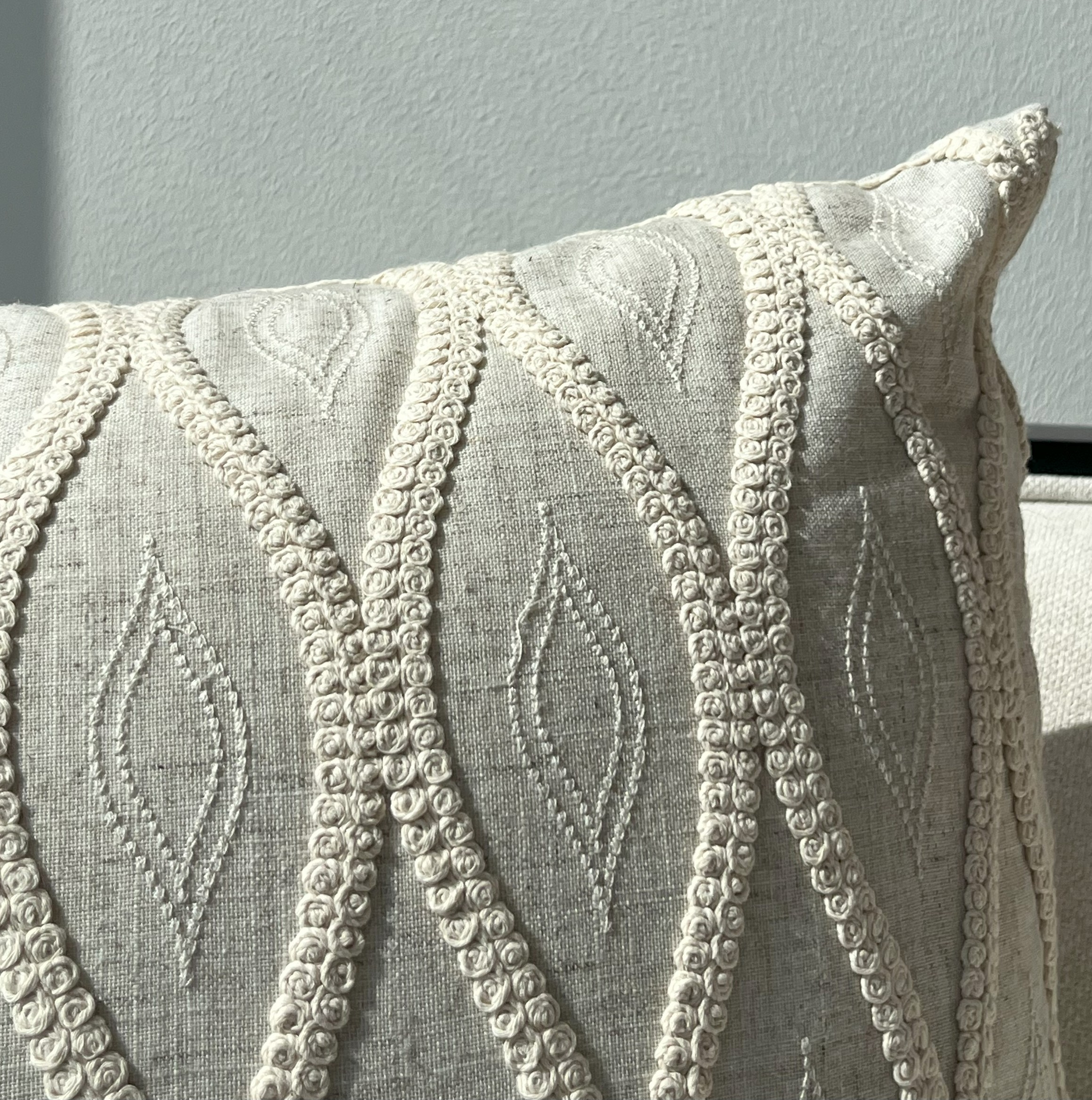 Add a touch of texture and sophistication to your living space with this Luxury Linen Decorative Cushion Cover. Featuring a beautiful embroidered wave pattern and a soft linen fabric, it's sure to elevate any sofa or armchair.