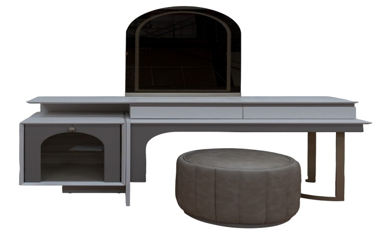 - Dresser with Mirror: 2 Drawers with 1 glass shelf behind doors and Mirror with integrated LED lighting | 47 x 153 x 185 cm