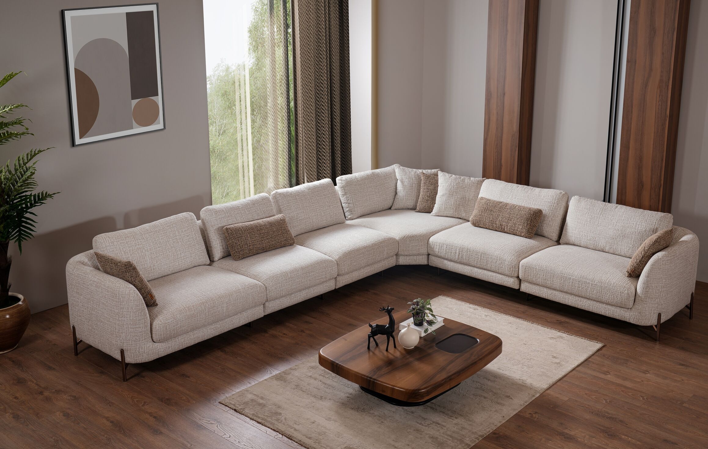 Transform your living space with the Milan L-Shape Corner Sofa Set. Designed with luxurious beige upholstery and plush cushions, this modern sofa offers both comfort and elegance. Perfect for large living rooms, it provides ample seating space and a contemporary design to elevate your home decor.