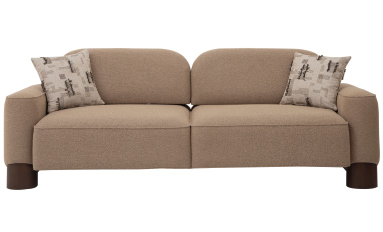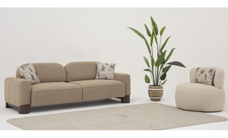 Create a minimalist and inviting living space with the Misya Living Room Set by Fahmy Furniture. This elegant collection features two sofas and a unique armchair, all characterized by their soft, rounded silhouettes and a clean, organic design. Upholstered in a comfortable, neutral-toned fabric and supported by a solid wood base.