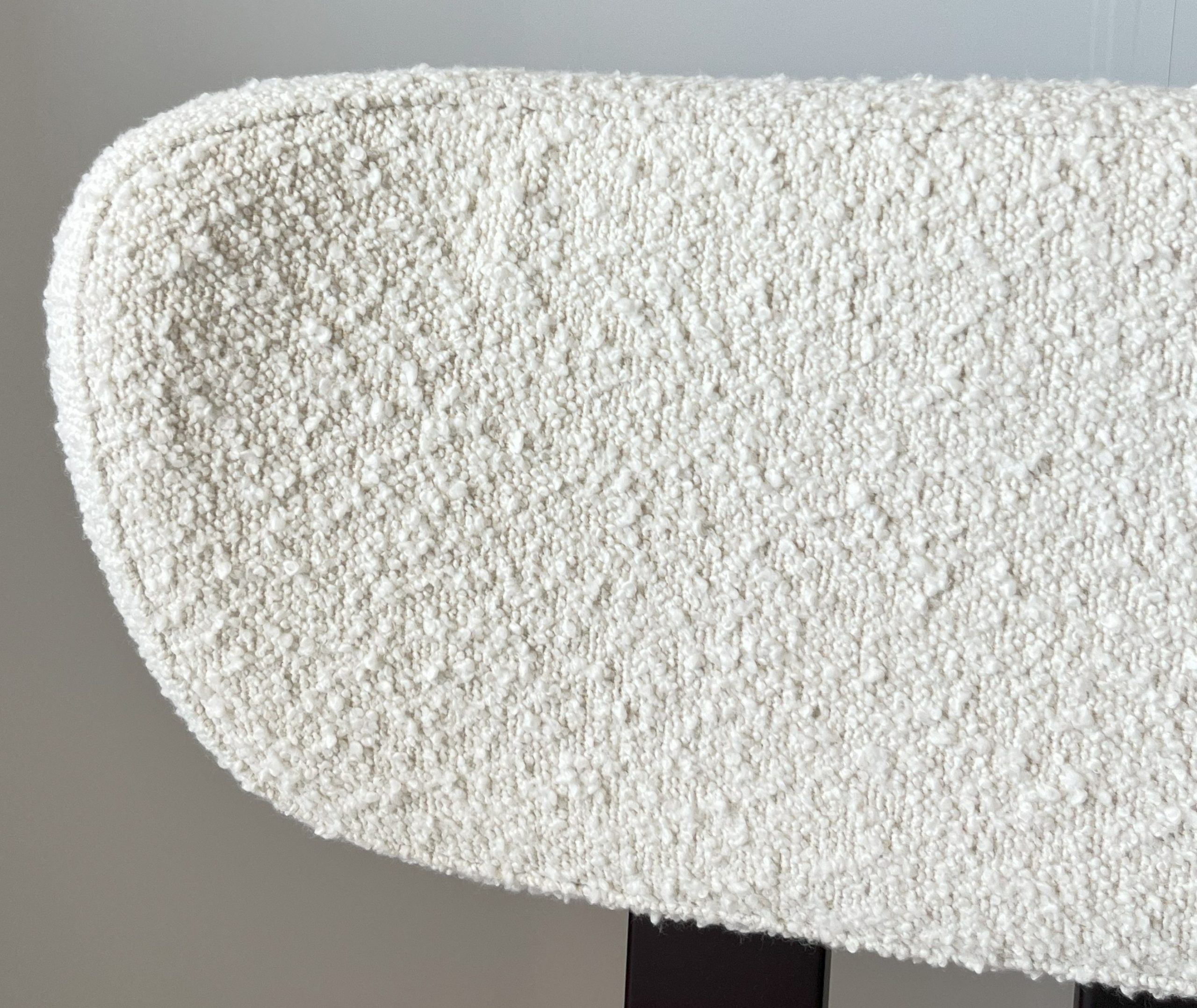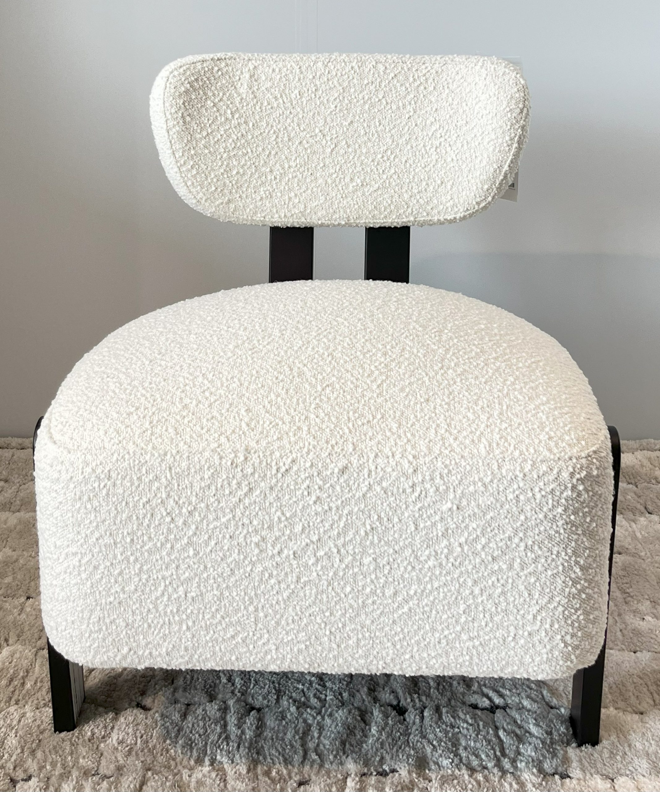 Add a touch of contemporary style to your living room with this modern accent chair. Featuring a unique design with a textured white fabric and a sleek black base, it's perfect for adding a stylish seating option to any space.