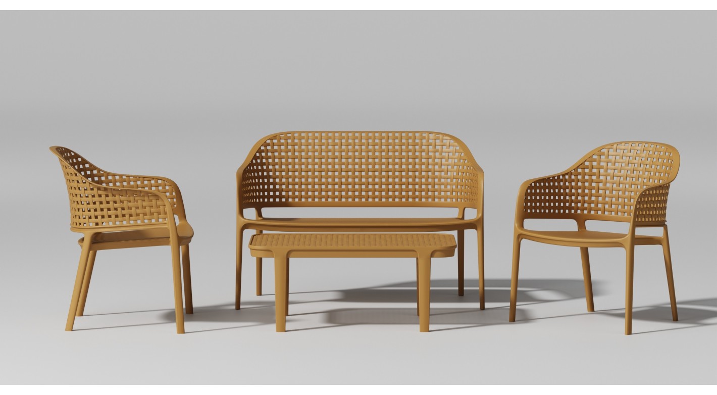 Refresh your outdoor space with this vibrant mustard garden sofa set. Crafted from durable, weather-resistant materials, this 4-piece patio set features a breathable lattice design that stays cool and drains easily. It’s the perfect low-maintenance solution for decks, poolsides, and backyards.