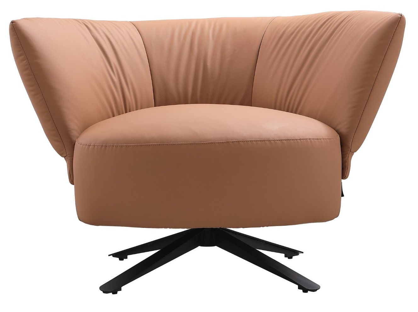 Add a pop of color and modern flair with the Orange Swivel Lounge Chair. Upholstered entirely in vibrant orange PU leather, this chair features a striking curved design and a comfortable swivel function. Supported by a sleek black metal star base, it serves as a stylish and functional accent piece, perfect for adding personality to any contemporary living room or seating area.