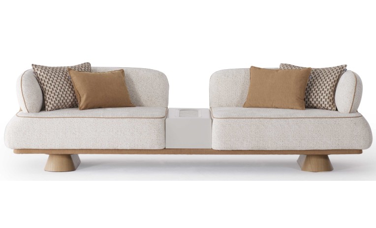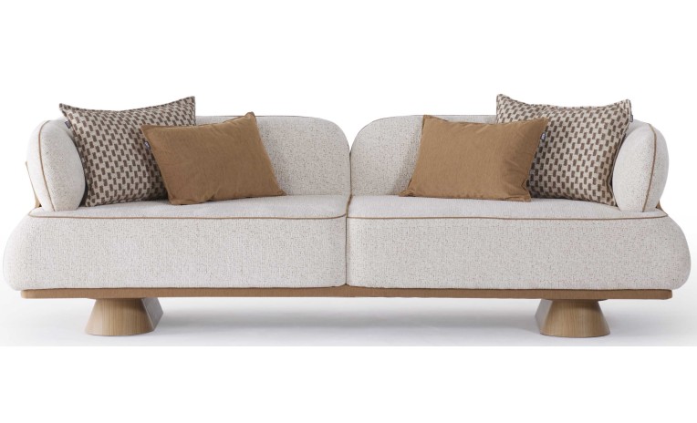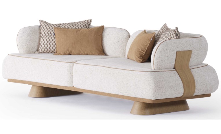 Discover a blend of comfort and artistry with the Roma Modern Sofa Set. This collection features a 4-seater sofa and a 3-seater sofa, all defined by their soft, curved silhouettes. The stunning sculptural wood bases elevate each piece, creating a sense of natural elegance. Upholstered in a neutral, textured fabric, this set provides a stylish and inviting centerpiece for your modern living room.